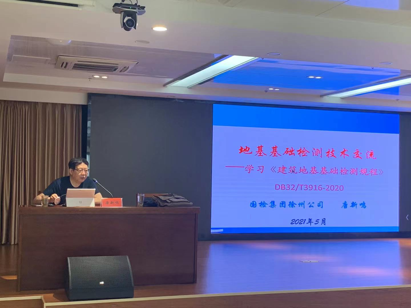 本次培訓邀請了江蘇省地方標準《建筑地基基礎檢測規(guī)程》(DB32/T3916-2020)主要起草人、國檢集團徐州公司技術創(chuàng)新中心主任唐新鳴教授級高級工程師來淮授課,培訓主要圍繞《建筑地基基礎檢測規(guī)程》修訂的內(nèi)容,從單樁靜載試驗、低應變法檢測、高應變法檢測等多種檢測方法展開講授、分析,以圖文、視頻展示等直觀方式貫穿整個講解過程。唐教授結合自身多年豐富的地基基礎檢測經(jīng)驗,理論聯(lián)系實際,分享了多項檢測創(chuàng)新技術思路,培訓效果受到廣大學員的一致好評。