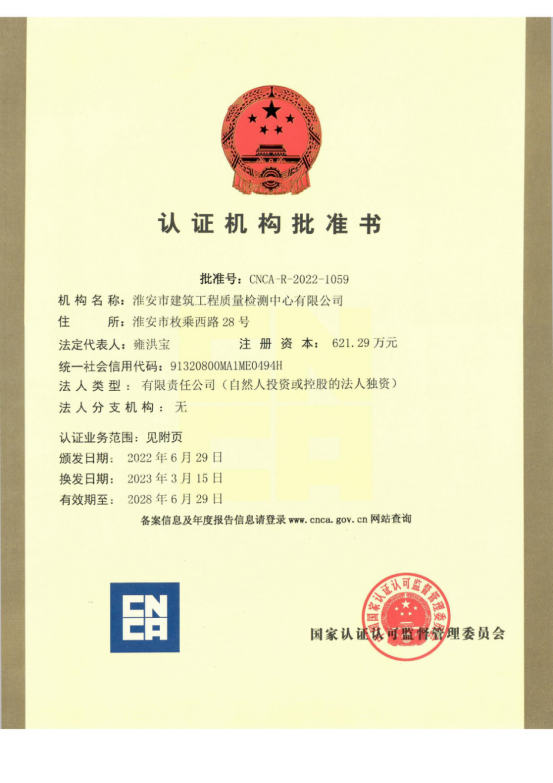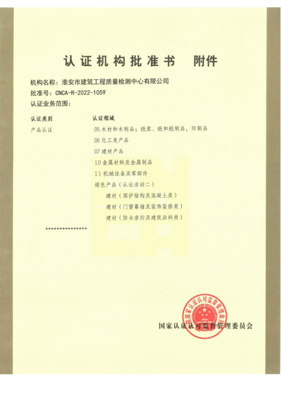 我公司持有國家認(rèn)證認(rèn)可監(jiān)督管理委員會(huì)頒發(fā)的《認(rèn)證機(jī)構(gòu)批準(zhǔn)書》(批準(zhǔn)號:CNCA-R-2022-1059),可在全國范圍內(nèi)開展自愿性產(chǎn)品認(rèn)證和綠色建材產(chǎn)品認(rèn)證業(yè)務(wù),向獲證企業(yè)頒發(fā)綠色建材產(chǎn)品認(rèn)證證書。